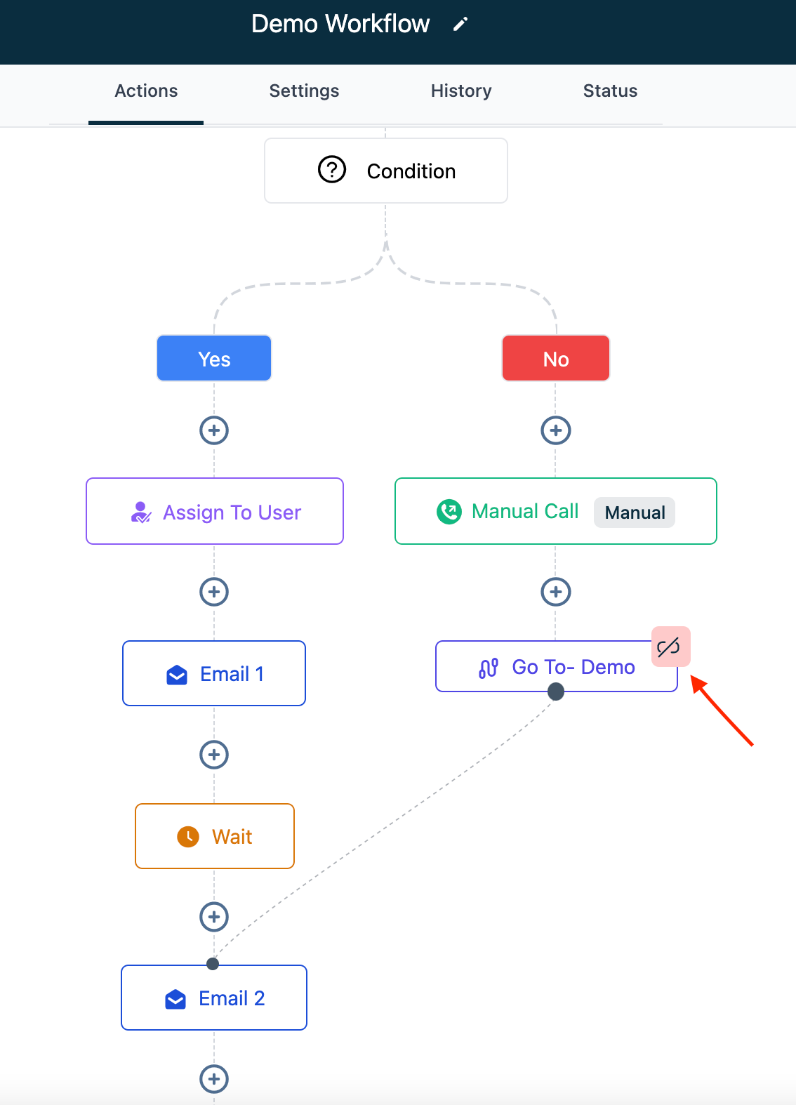 • You’ll then see this icon and the dotted icon, indicating the “Go To” action is set up in the path.