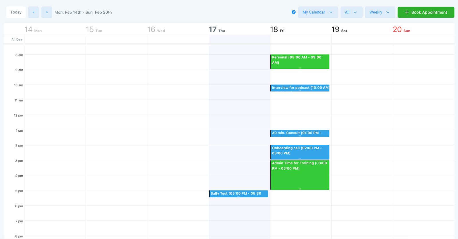 - Under “All” you can filter your calendar to show appointments, blocked time, or both.