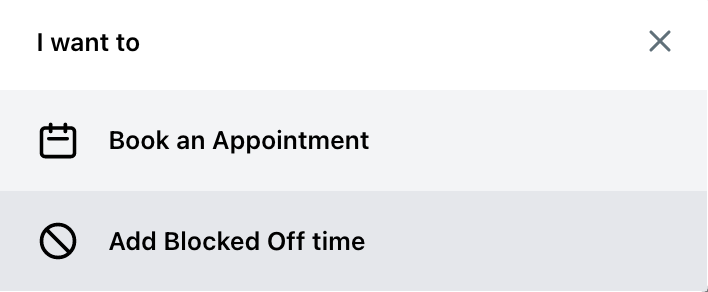 - In the popup window, choose “Add Blocked Off time”.