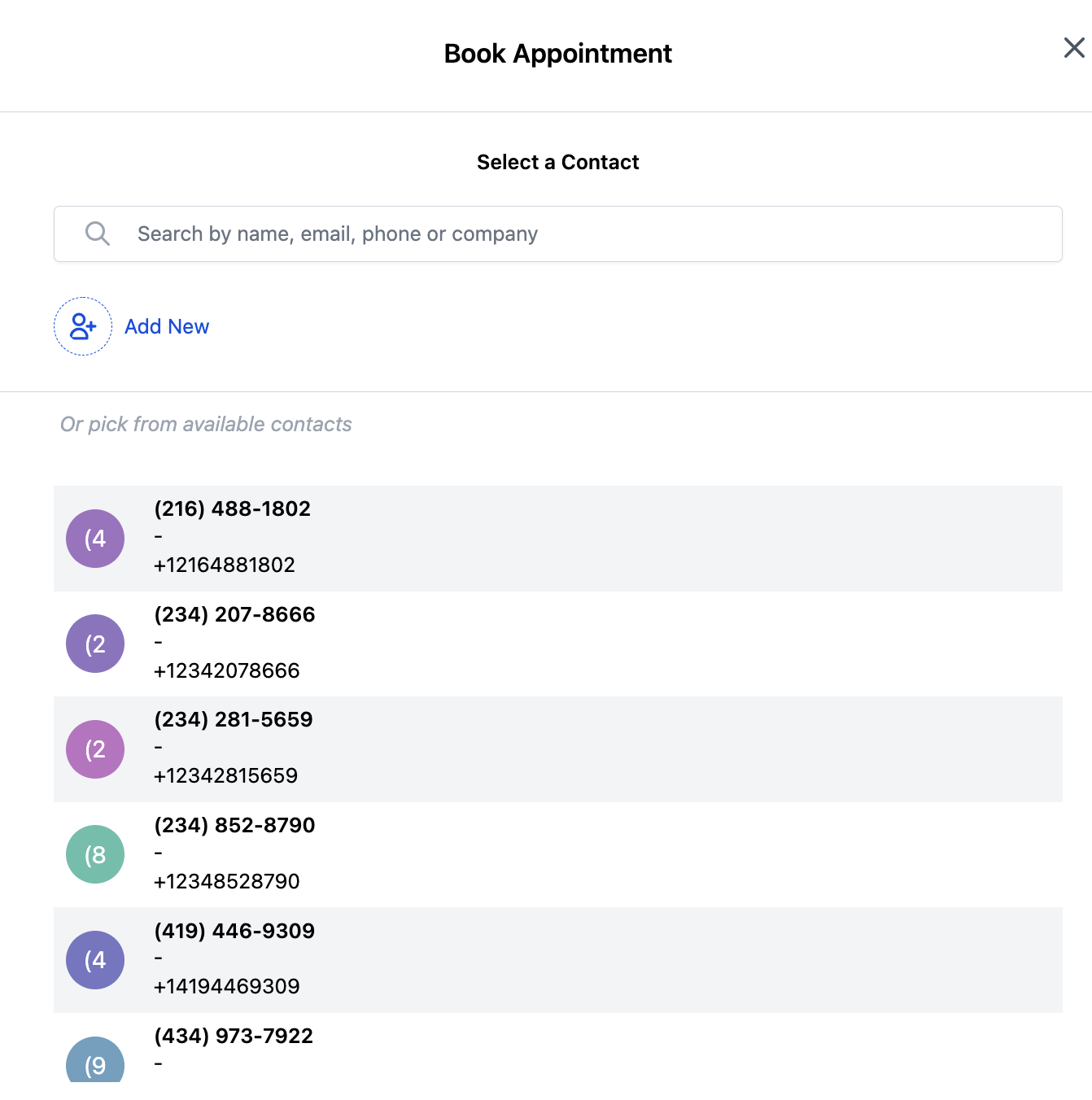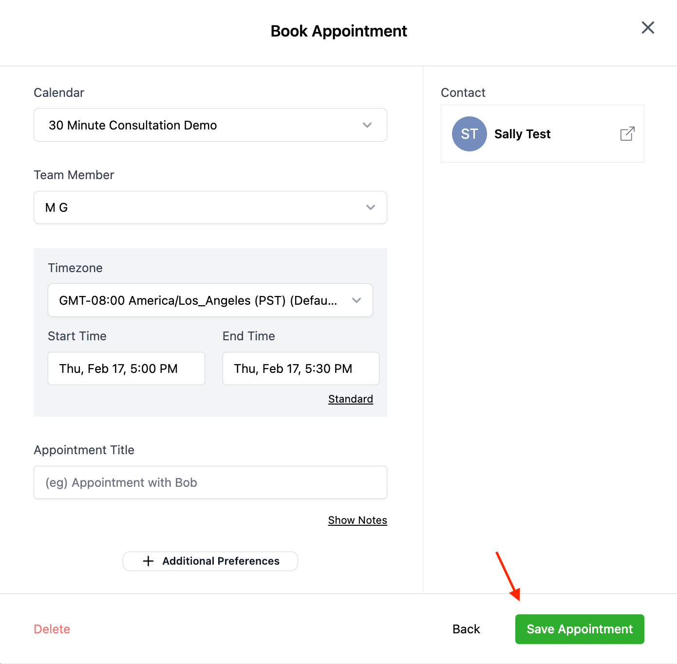 - Select the Contact you wish to create the appointment for.