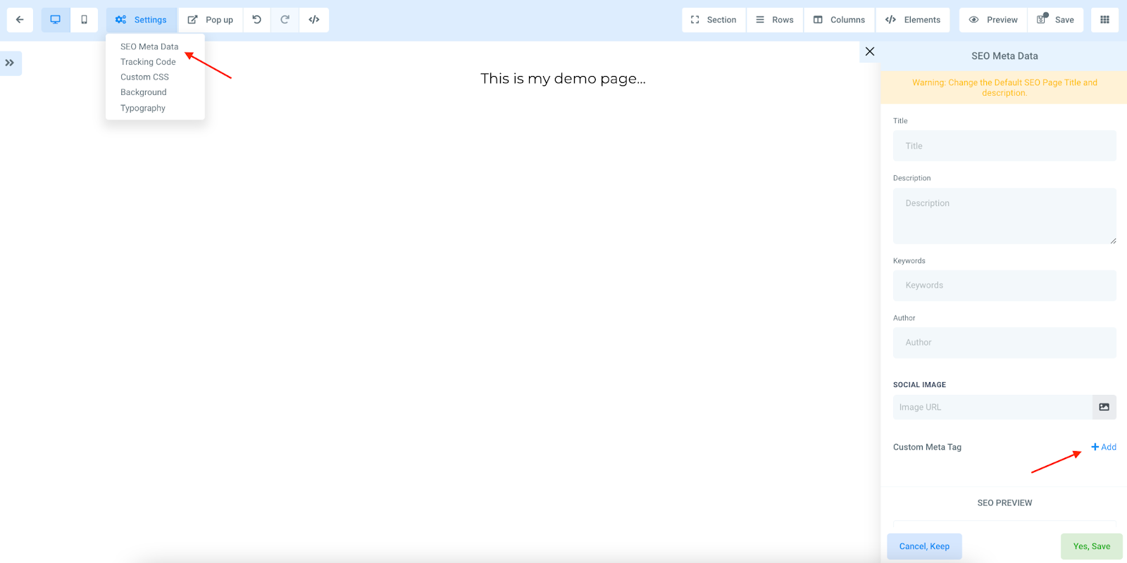 • Save the SEO Metadata settings by clicking on the “Yes, Save” button: