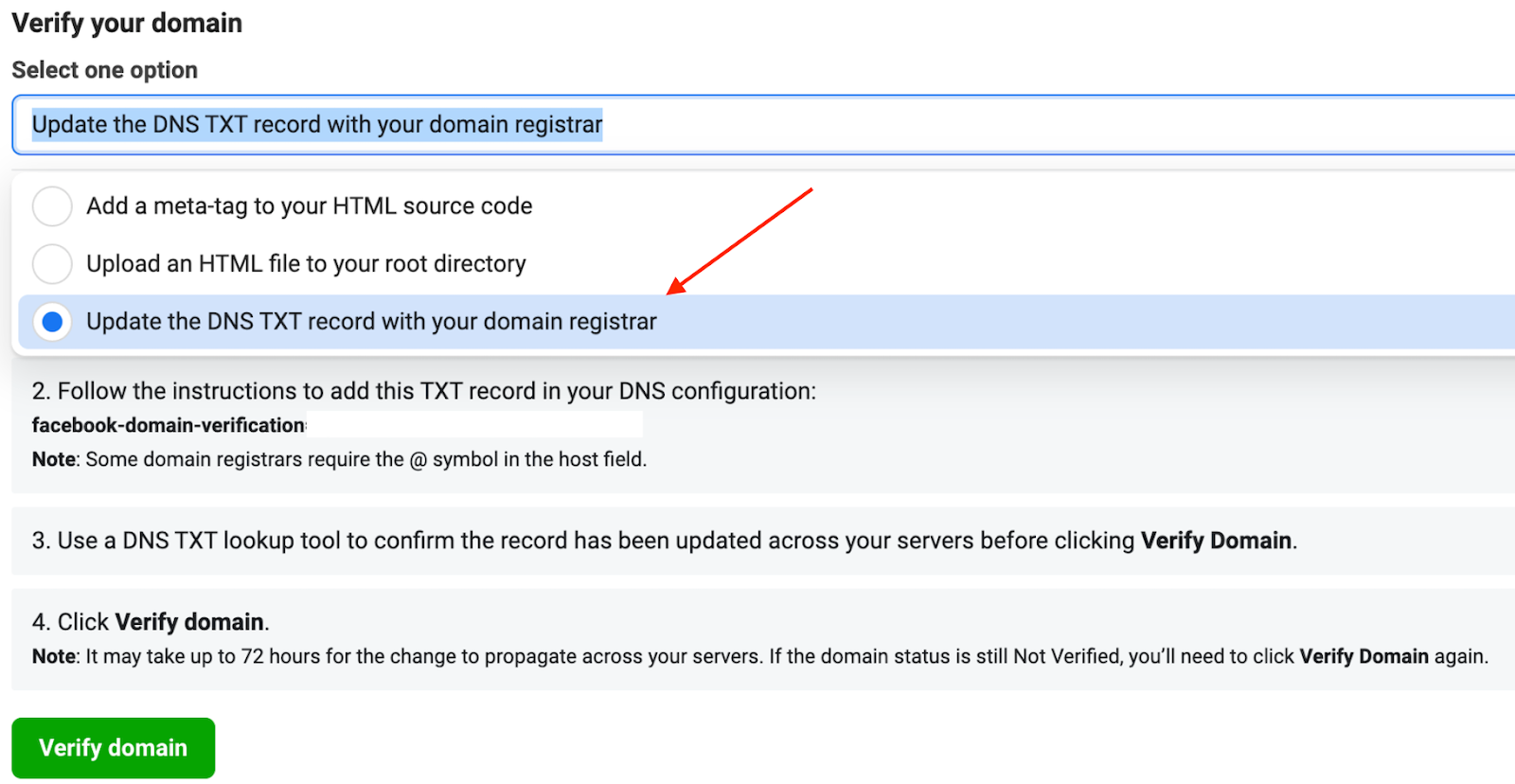If you need to verify your domain on Facebook, you can use the ‘Meta Tag’ verification method to do so. Follow these steps to learn how: