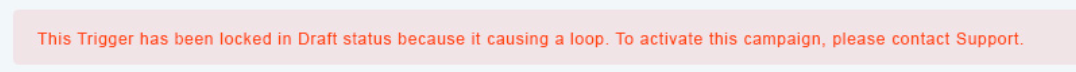 If you receive a Loop error, contact Support and we can review the Campaign, Trigger, or Workflow to assist you with unlocking it and resolving the Loop.