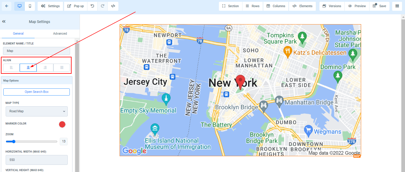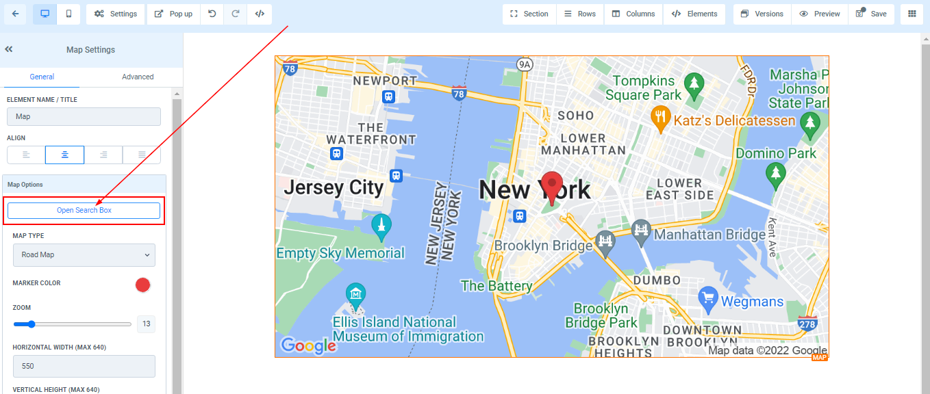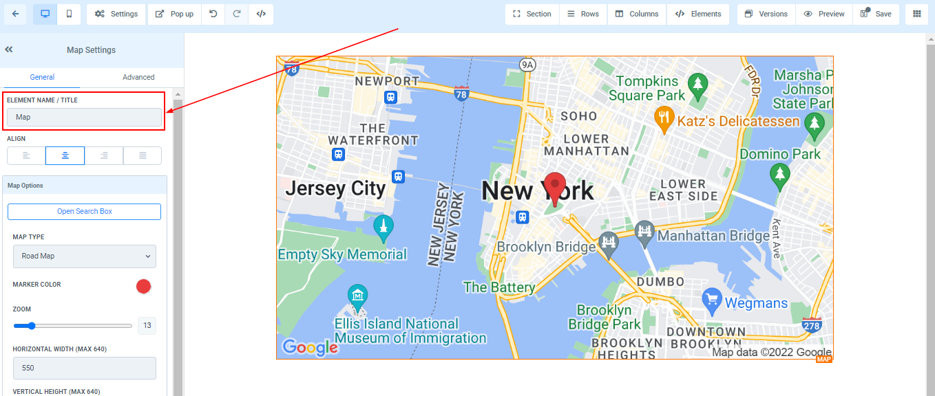 You can use the “Map” Element when you want to include your Business location in tour website.
