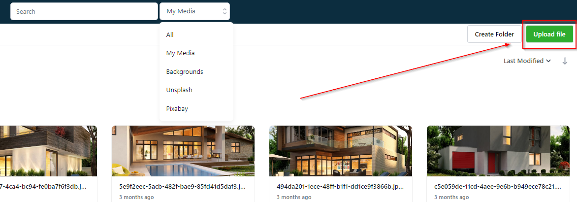 Lets you upload a file from your computer. Upon clicking on this tab, you will see a new window with your computer storage from where you can upload the media files into the system.