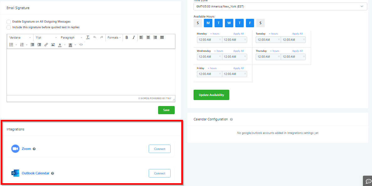 Set a custom email signature for emails sent by your user account when contacting leads and customers from within the CRM.