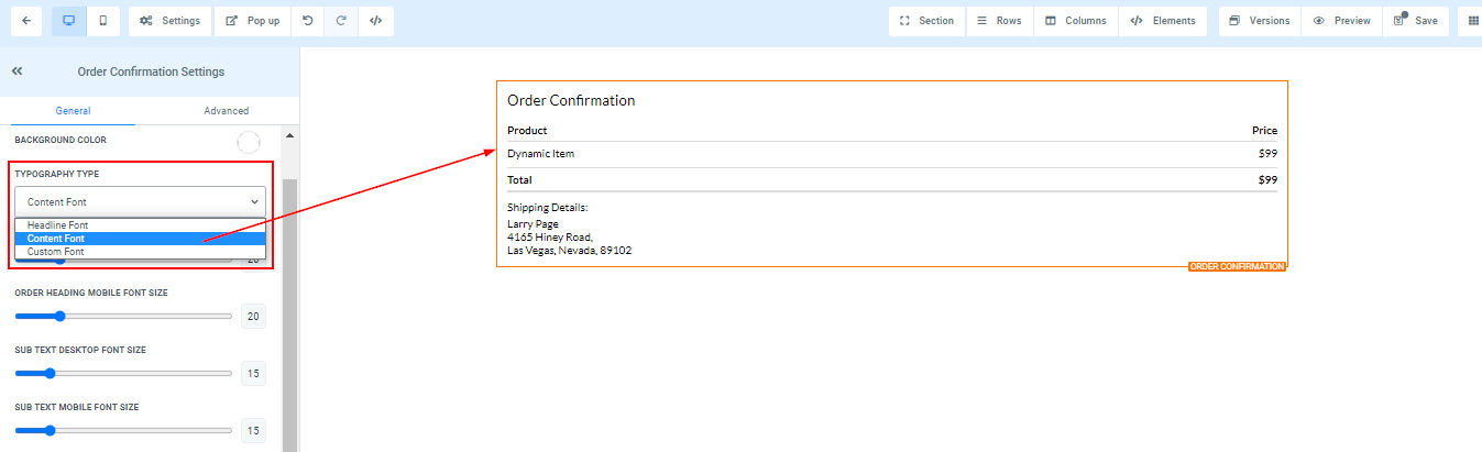 Order Heading Mobile and Desktop Font Size