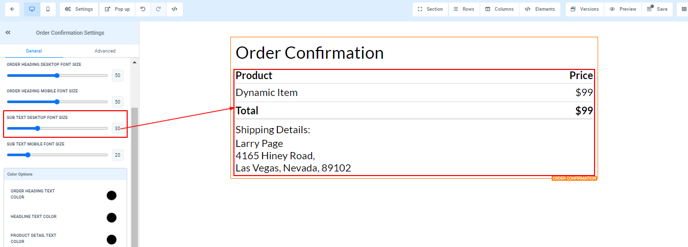 Product Detail Text Color ****You can only edit the color of the Product detail (Dynamic Item) here.