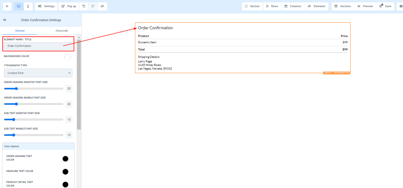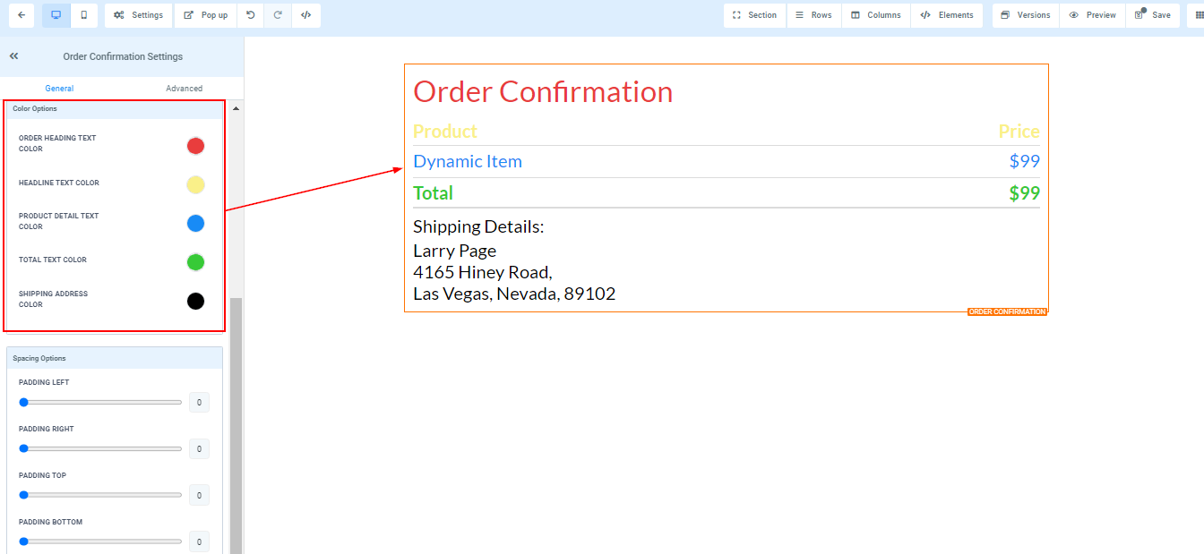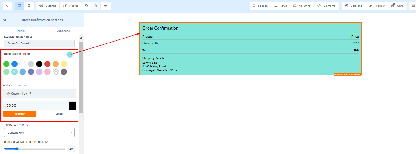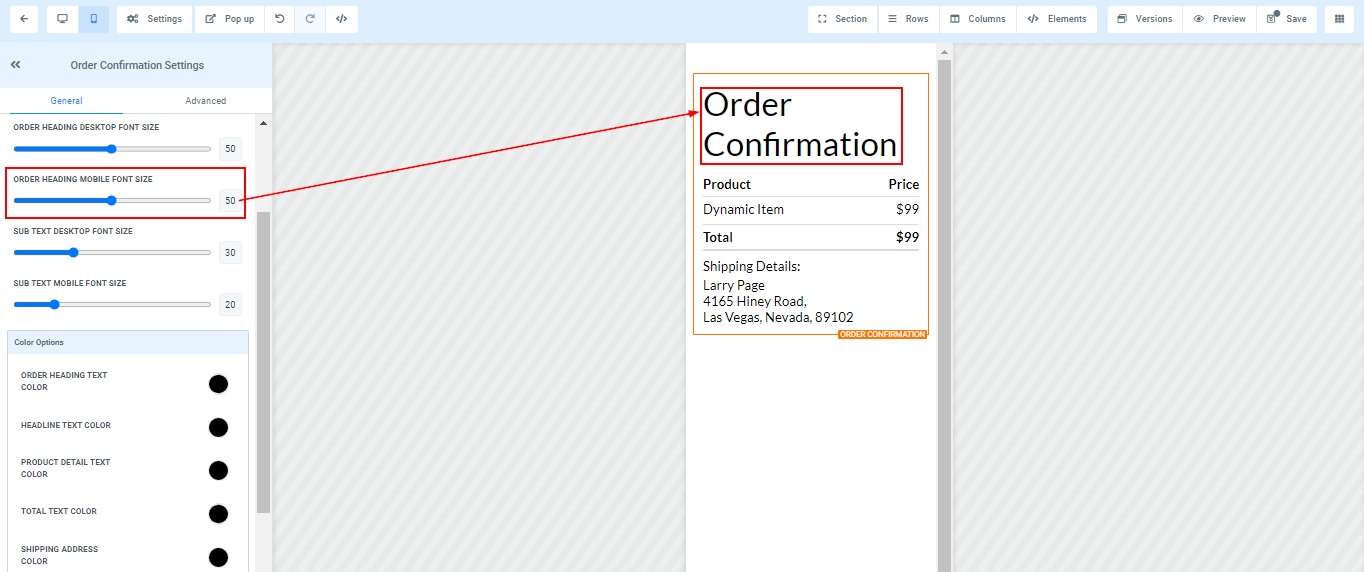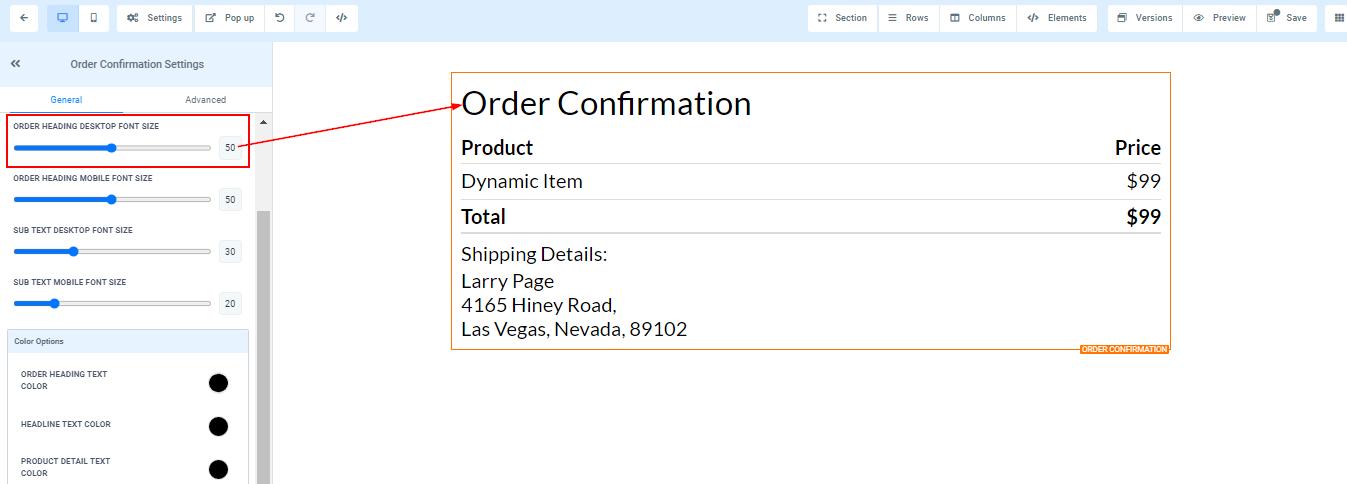 Order Heading Text Color ****You can only edit the Order heading text color here