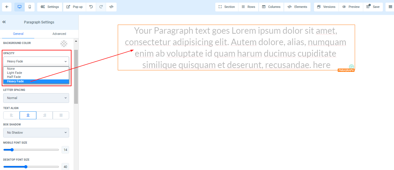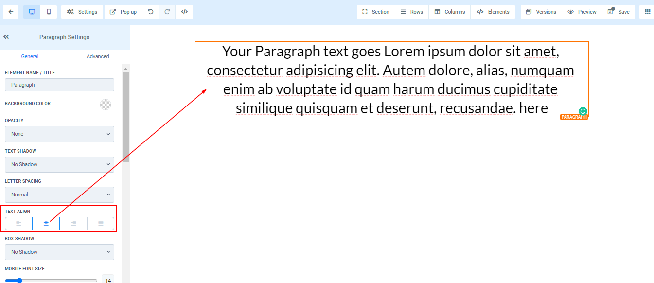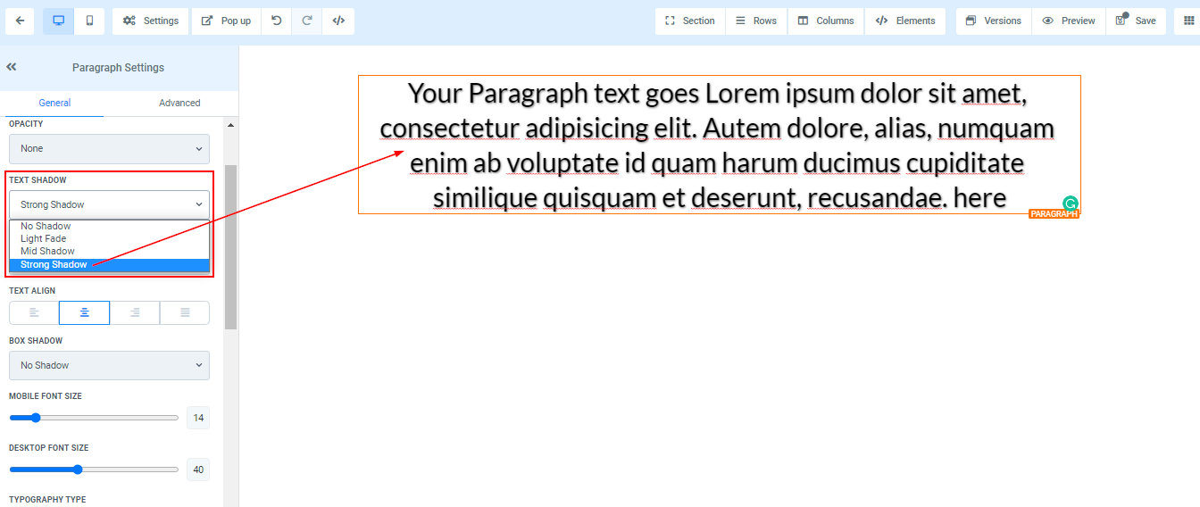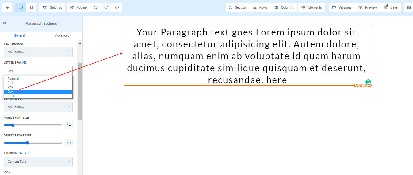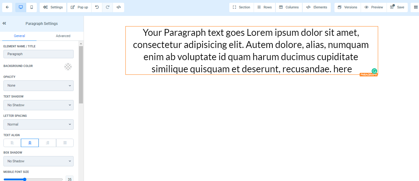 To add a Paragraph, drag and drop the paragraph in the editor’s space to manage the settings.