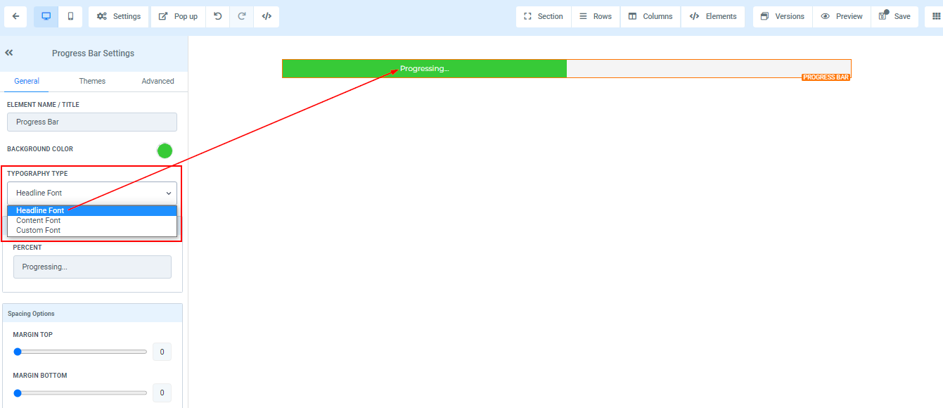 Here you can edit the font of your text/content.