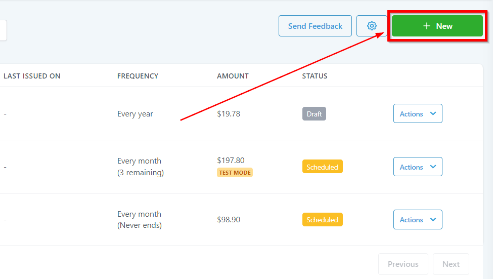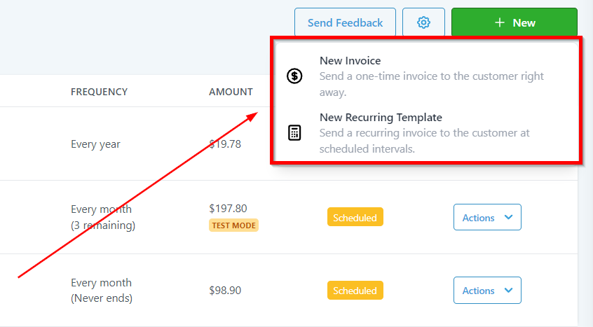 New Invoice – Use this to create New Invoice.