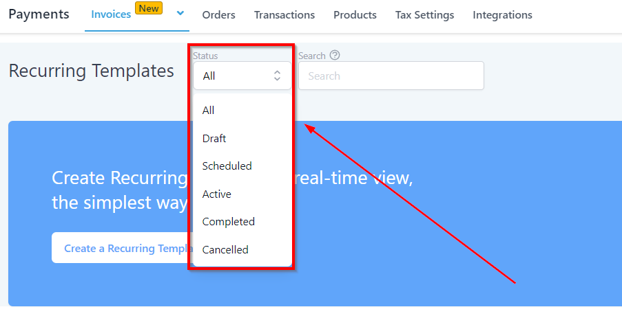 This is the recurring template dashboard where you will see the list of all of the templates you have created within your system.
