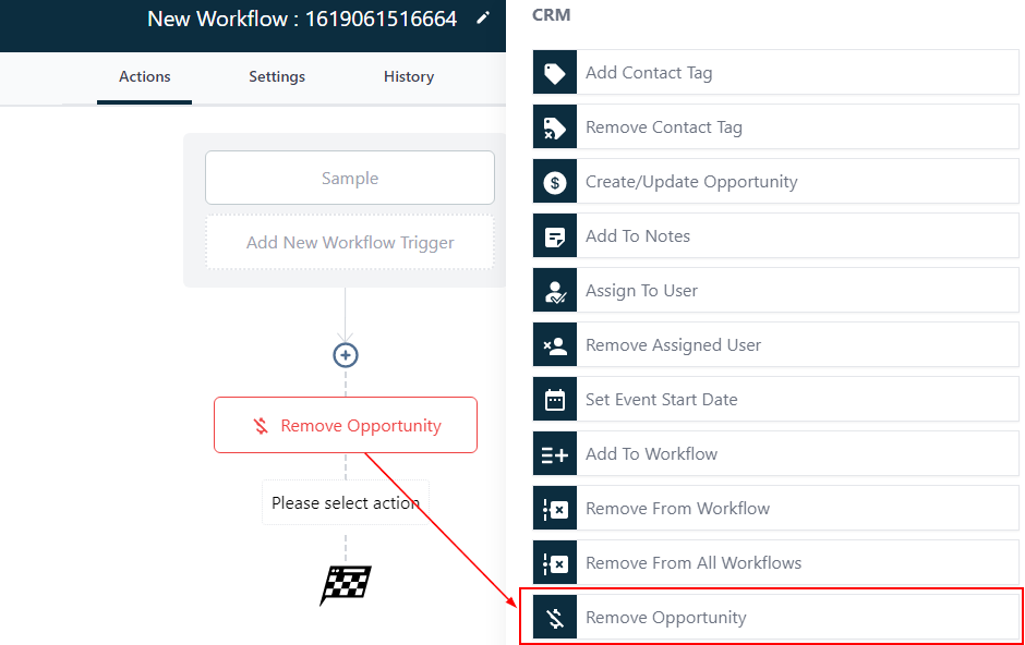 This action removes an opportunity associated with the contact.