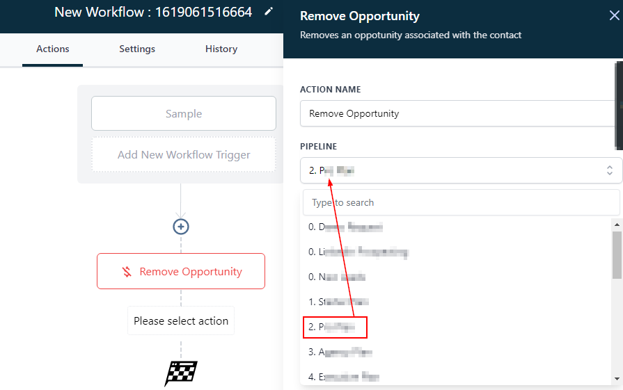 Select the pipeline you would like to remove the opportunity from.