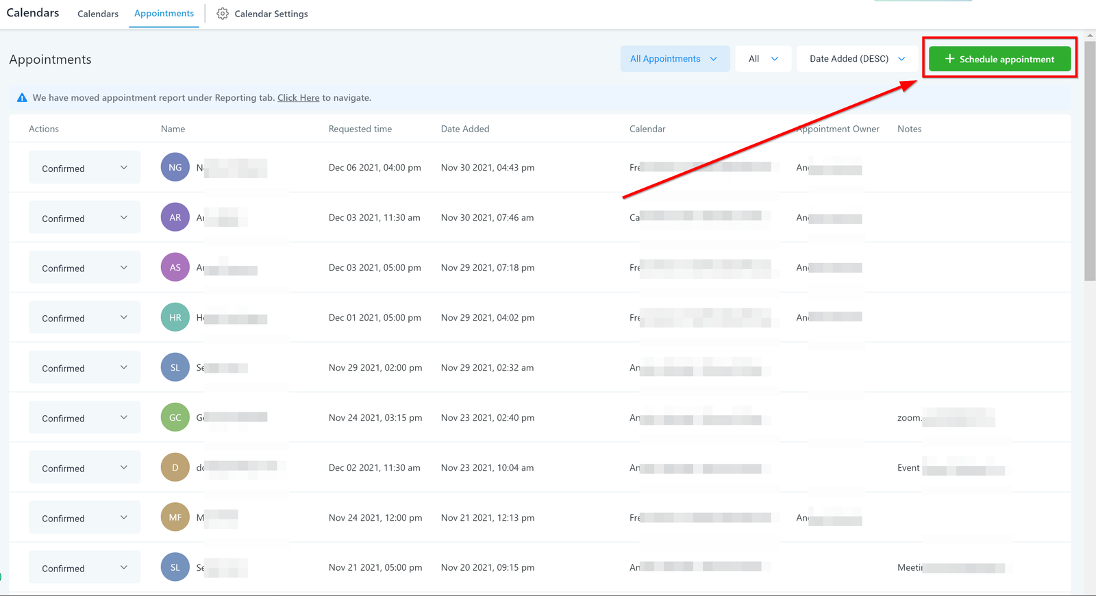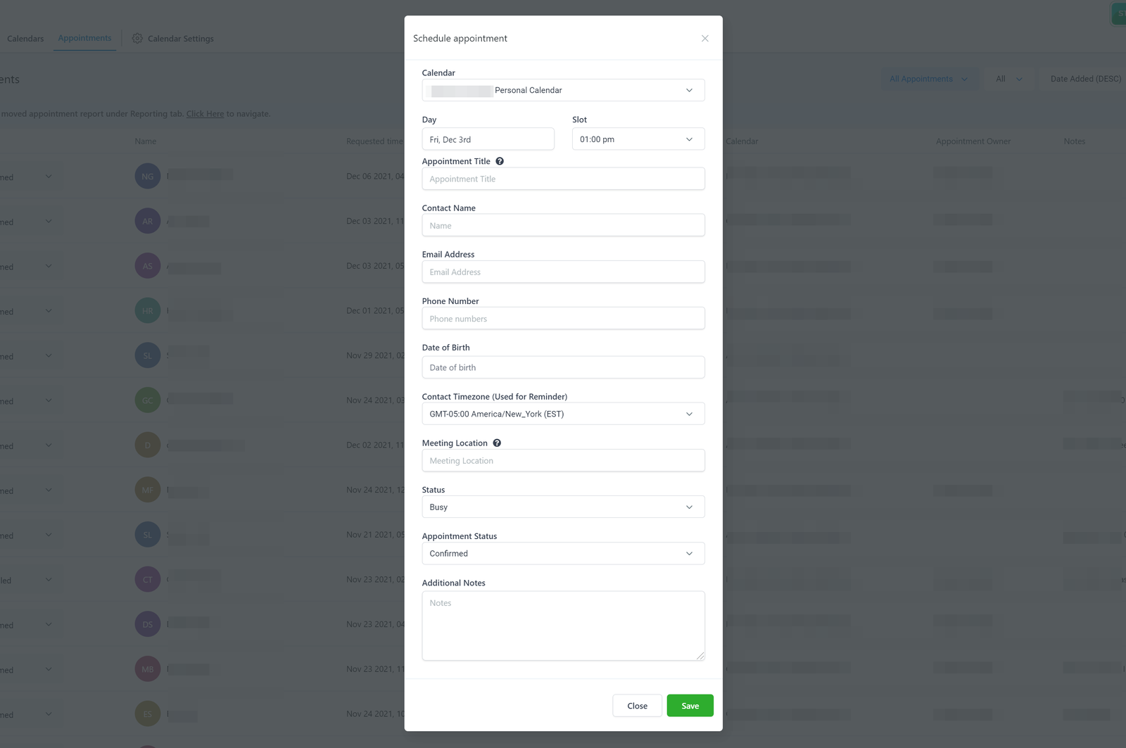 If you would like to schedule a new appointment manually, you can do so by clicking the “+ Schedule Appointment” button here. This is especially useful for phone sales or live chat sales.