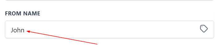 Input the name of the Sender in this field. YOu can also click on the tag icon to use the custom value.