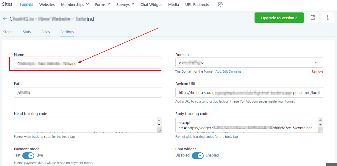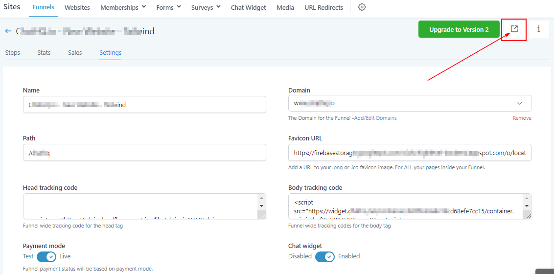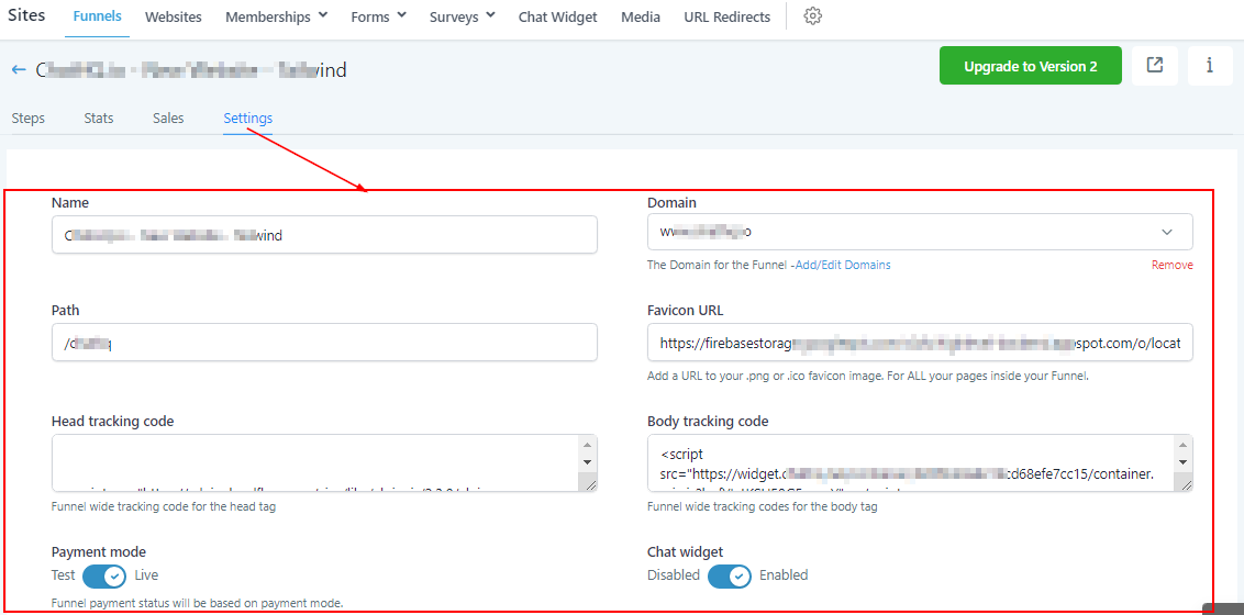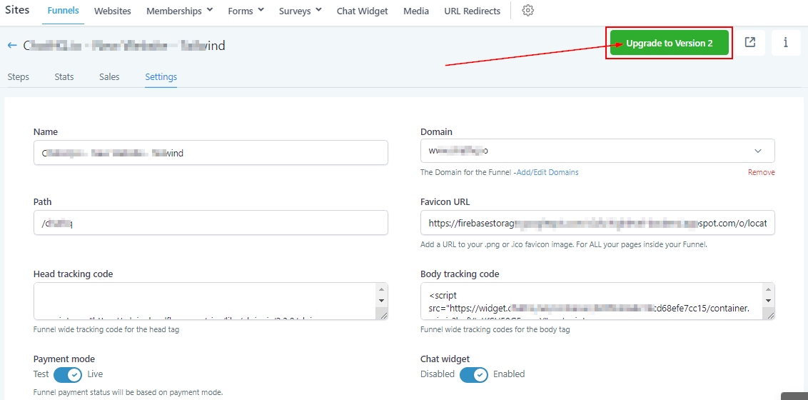 ​If you want to upgrade from funnel version 1 to version 2, click on this ” upgrade to version 2″ button.