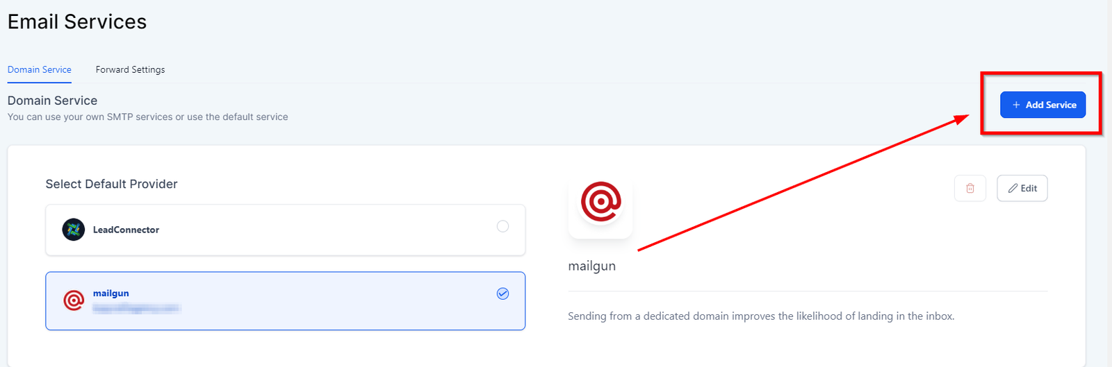All new accounts will, by default, use Lead connector – Email, but a third-party SMTP provider can be integrated anytime.