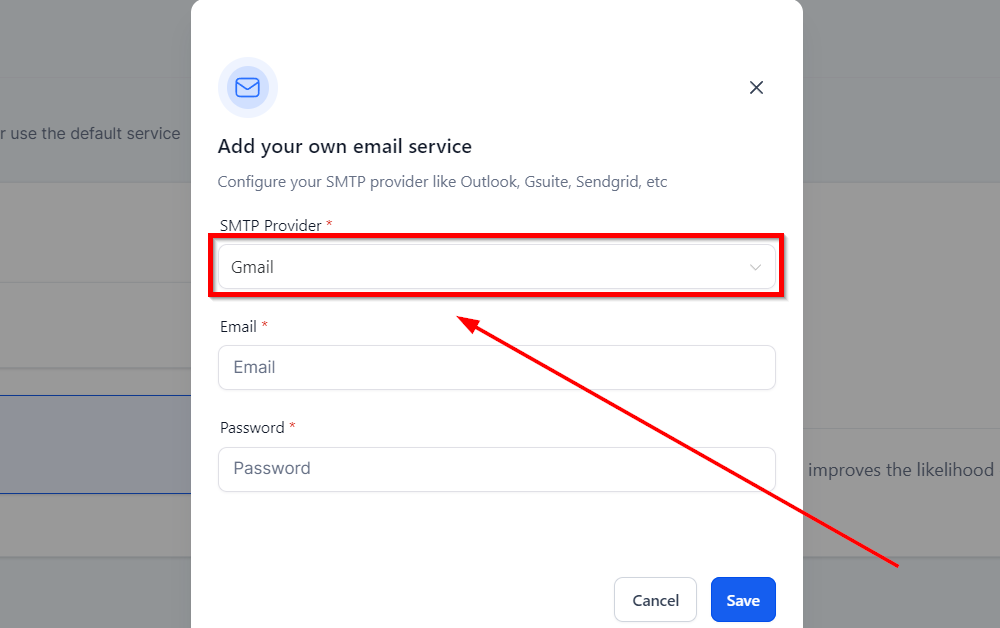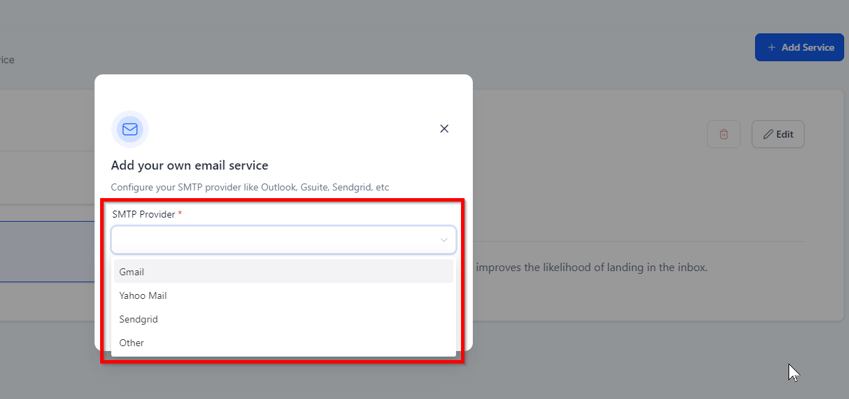SMTP Provider – Click on the dropdown menu to select the SMTP provider.