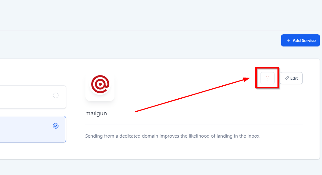 Depending on CRM user permissions, This option will allow you to delete an email service provider.
