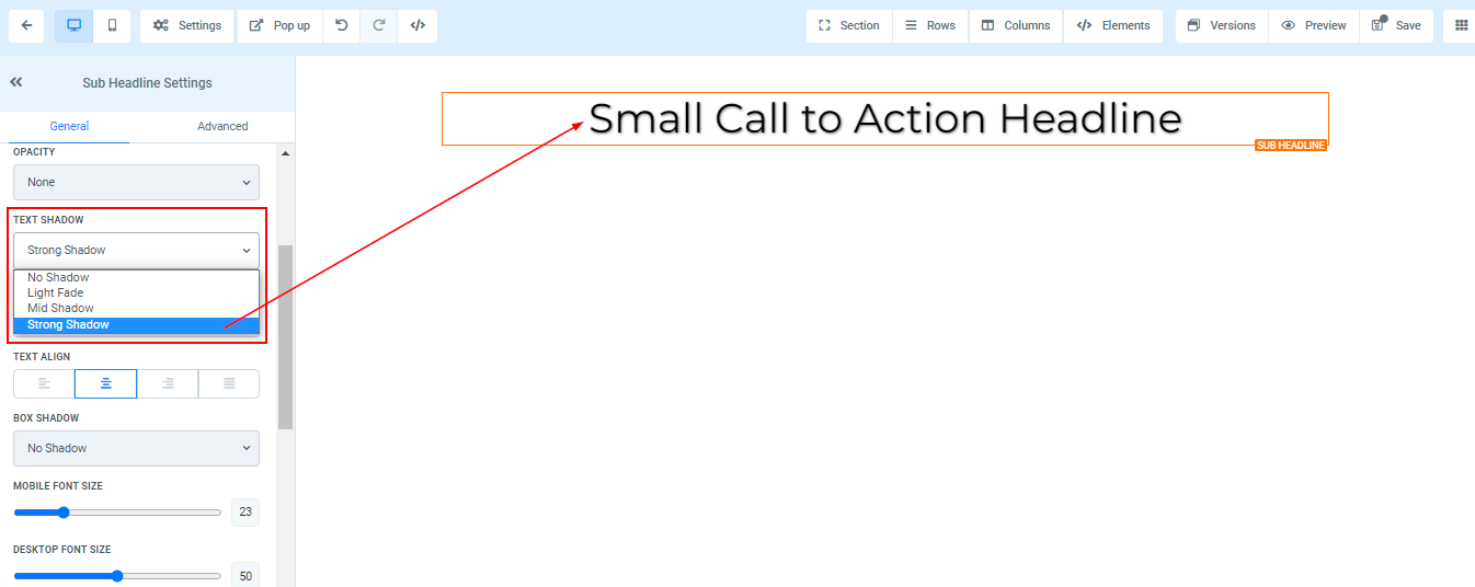 If you want your text/content to have a shadow, simply select how thick or light you want the shadow to be.