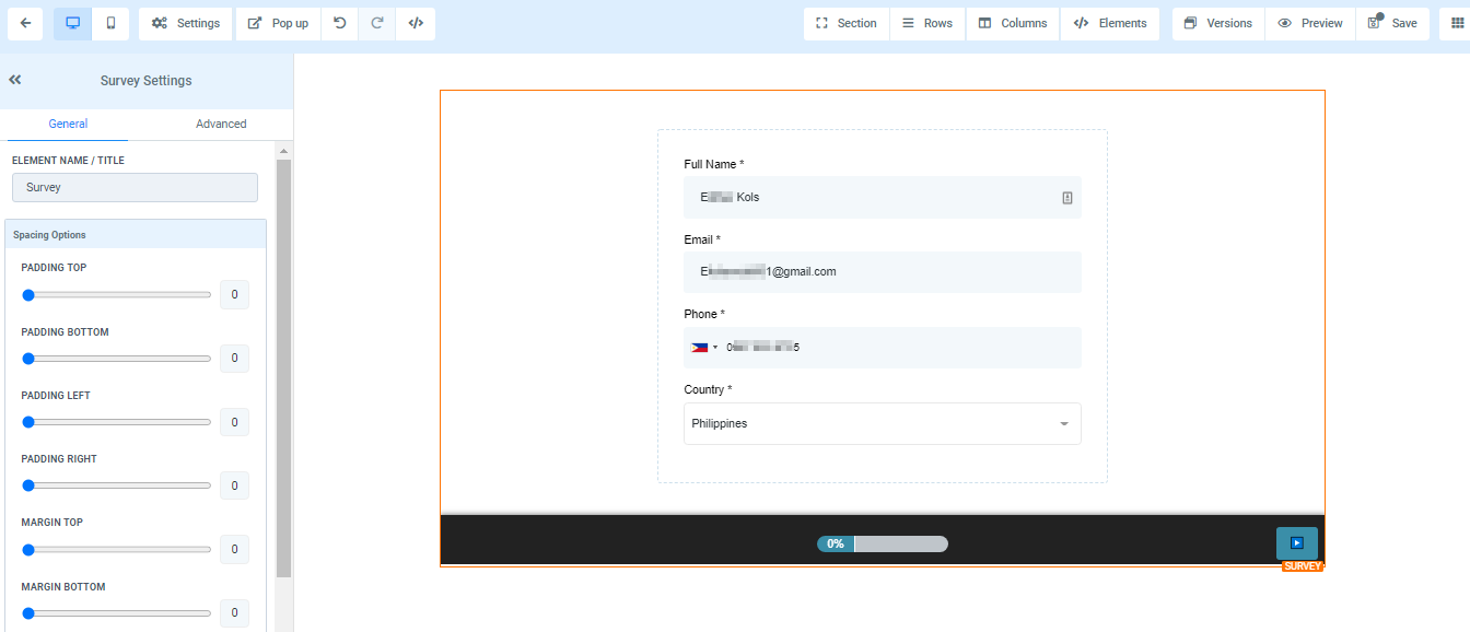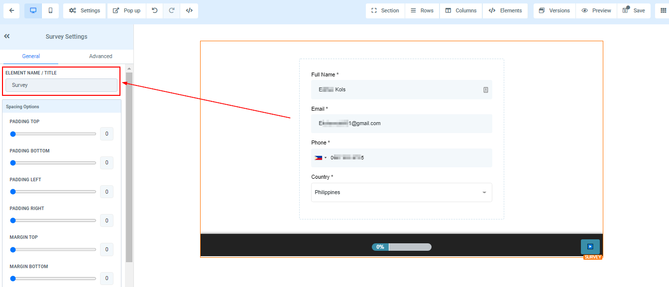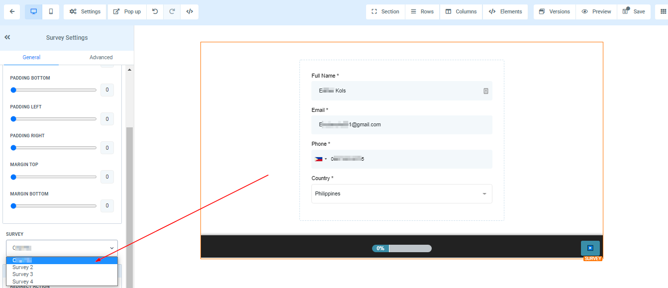 You can incorporate your Survey into your page. If you haven’t created one yet, you will be redirected to the Survey page to create one.