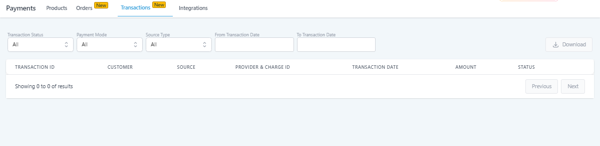 In this section, you can see a list of all transactions involving your connected Stripe and PayPal products.