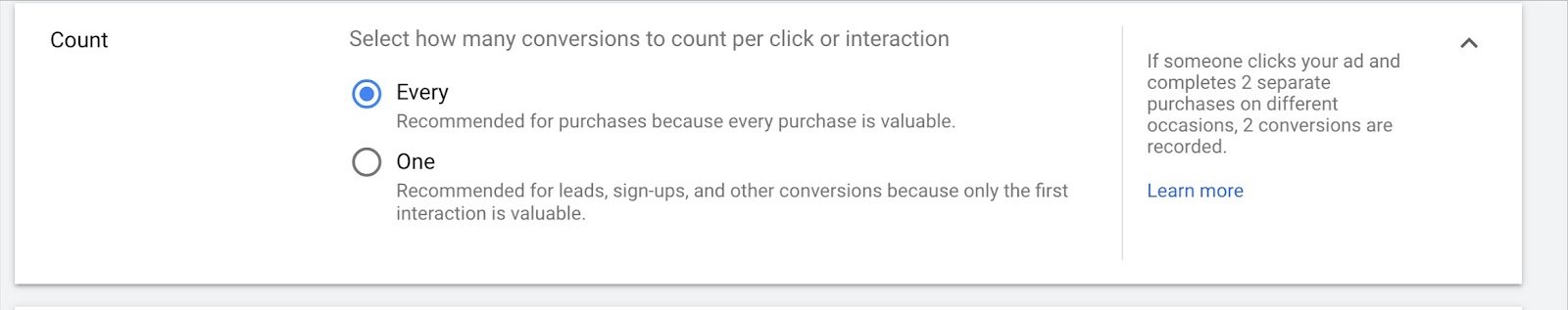 - Determine the count, either “every” or “one”.