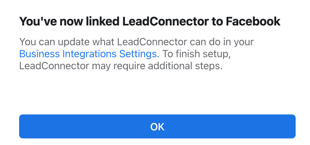 - Click “OK” and LeadConnector will be integrated with your system.