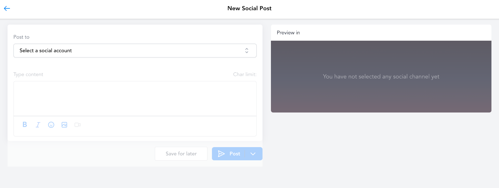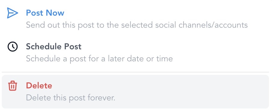 - You can either “post” to share now, or “save for later” to schedule for a later time.