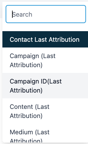 - NOTE: There are several options to choose from for “Contact First Attribution” and “Contact Last Attribution”. Be sure to scroll down through them all to find the best option for your specific situation.