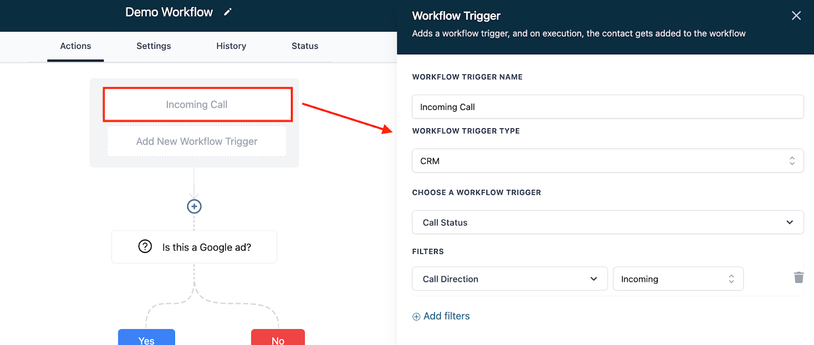 - Choose Call Status and Filter Call Direction as “Incoming”