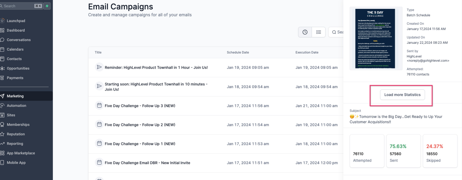 - Go to “Marketing” > “Emails” > “Campaigns.”
