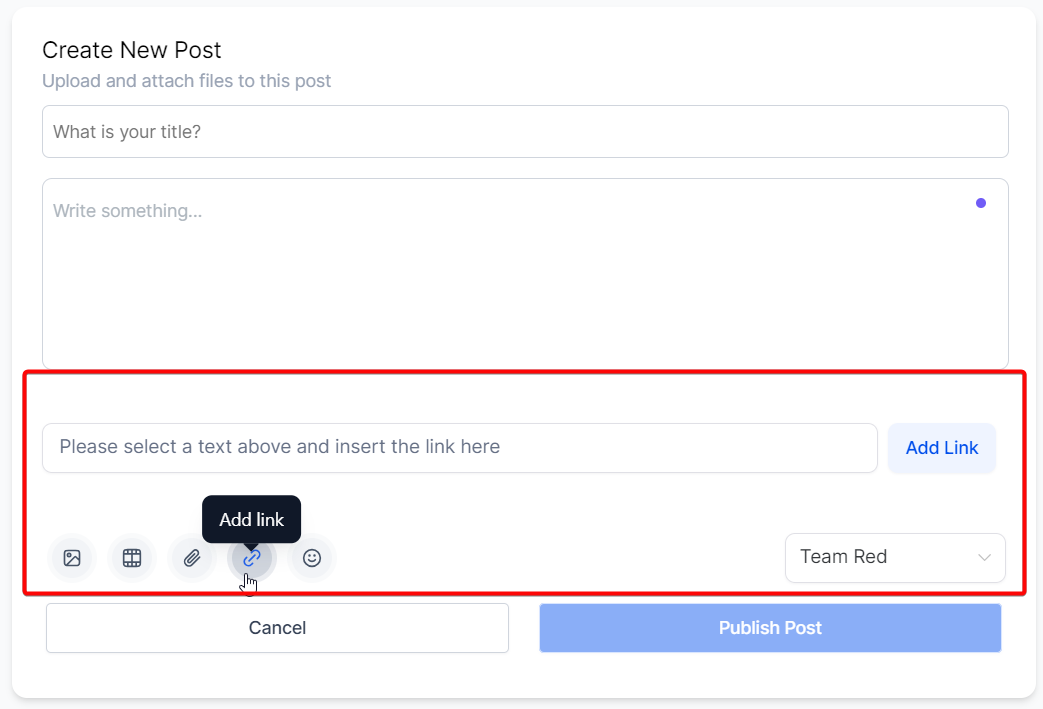Hyperlinking text in your post can lead readers to additional resources or relevant content. To add a hyperlink, highlight the text you want to link, paste your URL in the designated area, and click ‘Add Link’.