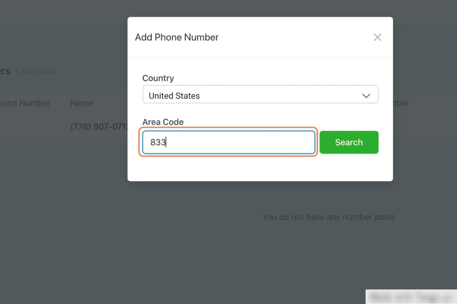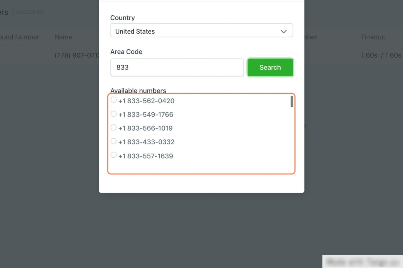 Toll-free numbers are numbers that begin with one of the following three-digit codes: 800, 888, 877, 866, 855, 844 or 833. If it’s not available for the one you are looking for, please reach out to support