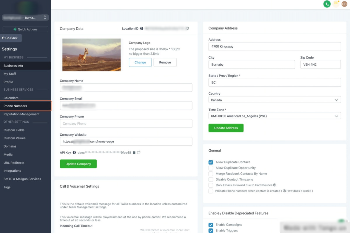 1. Head into your Location/ subaccount where you would like to purchase a Toll Free number: