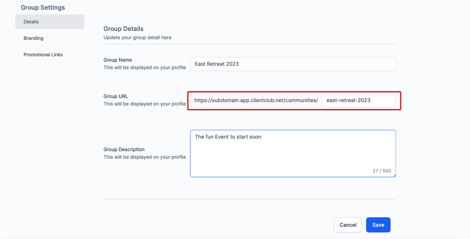 Including the group URL in your campaigns enables your members to access and join the community group easily.
