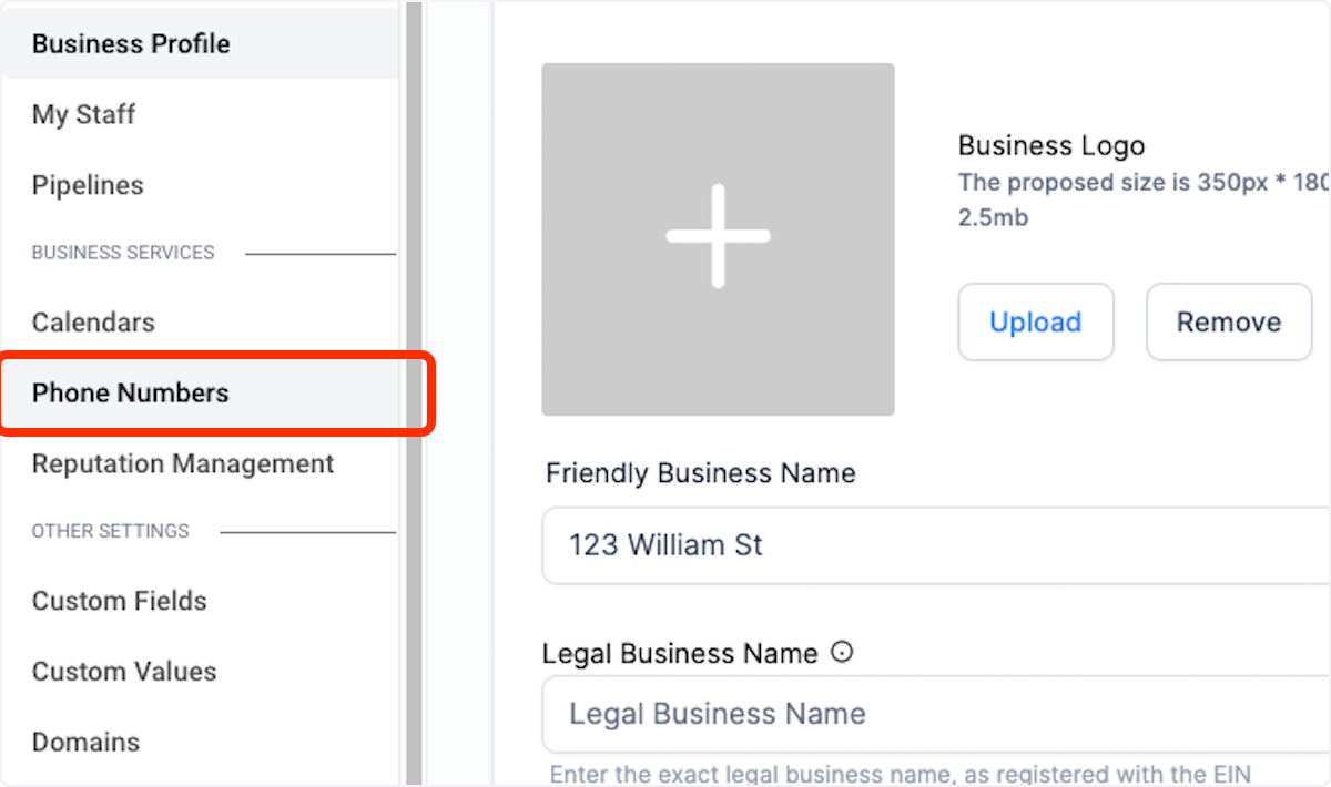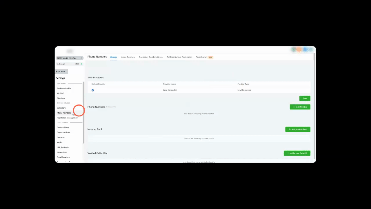 2. Click on Phone Numbers