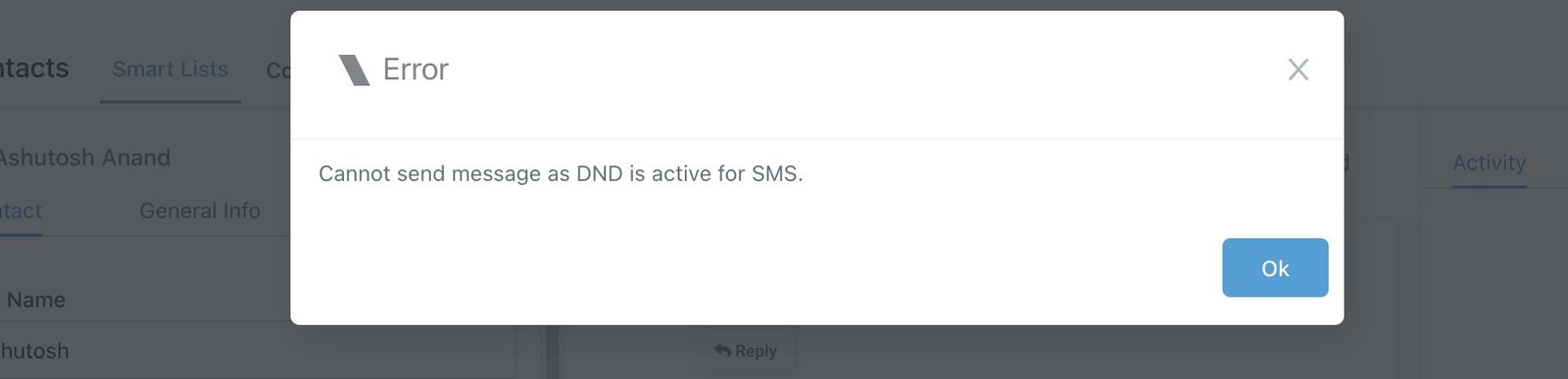 Opt-Out Keyword: Individuals must be able to revoke consent at any time by replying with a standard opt-out keyword like STOP, Unsubscribe, etc. In this case, a permanent DND will also be enabled at the contact level.