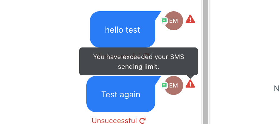 1. Conversation Error: You have exceeded your SMS sending limit.