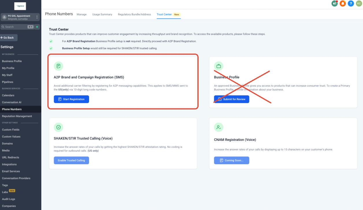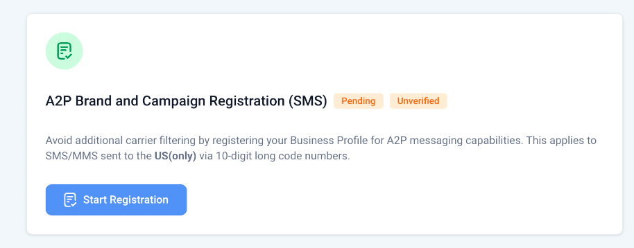 Unfortunately, your SMS traffic will cease to deliver to AT&T, T-Mobile, Verizon, ClearSky, etc. if you do not perform the registration. Please note this is not specific to LeadConnector Phone or enforced by us. This is done by the carriers and The Campaign Registry.