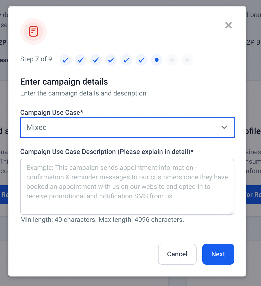 We will automatically create the messaging service and link it to all the phone numbers available in the sub-account once the campaign is approved.