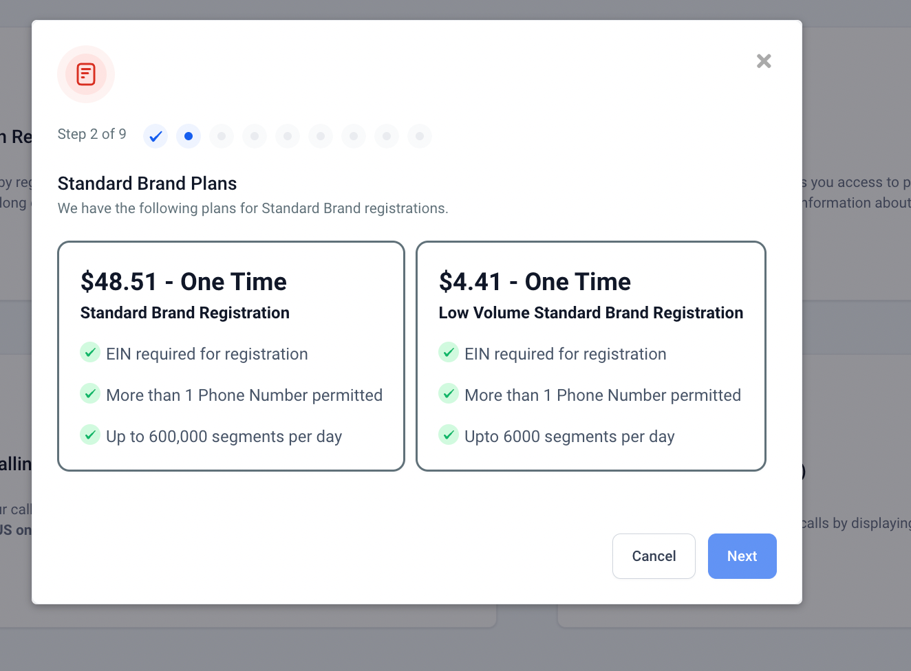 Please refer to Toll-Free Number Registration for LC – Phone (US/Canada) to learn how you can switch to toll-free numbers and perform toll-free number registration. This is free and by using this you can avoid dealing with A2P 10DLC registrations and associated costs altogether.