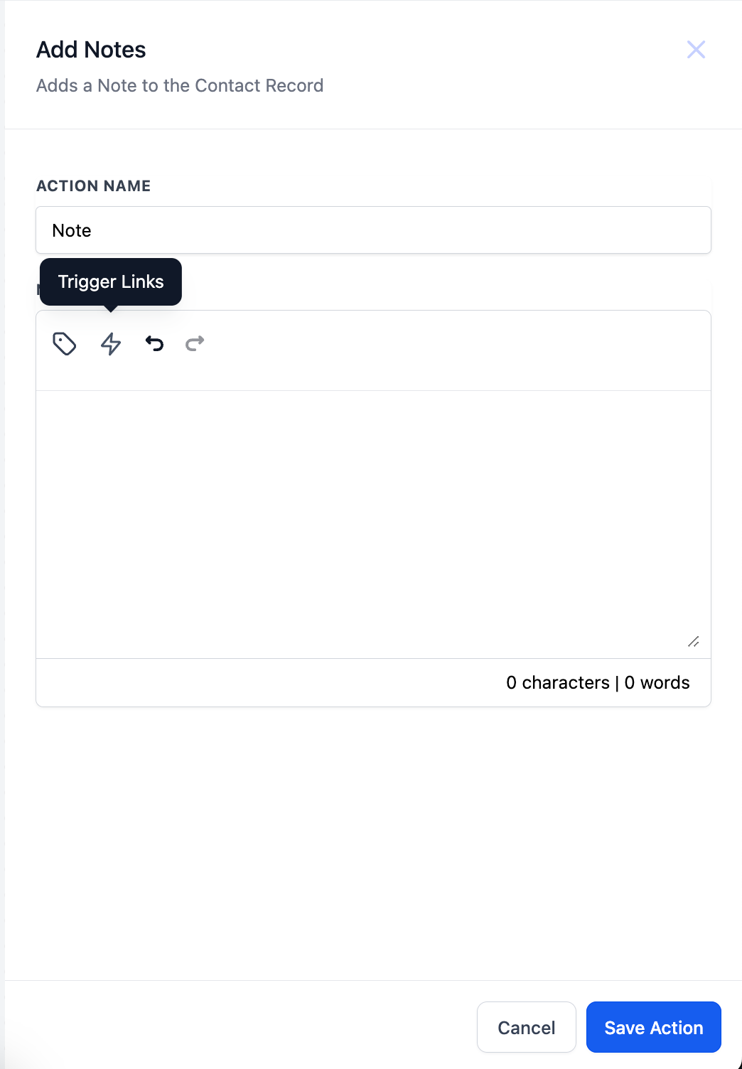 - Trigger links: Trigger links can also be added in the notes using the “Trigger Links” icon.