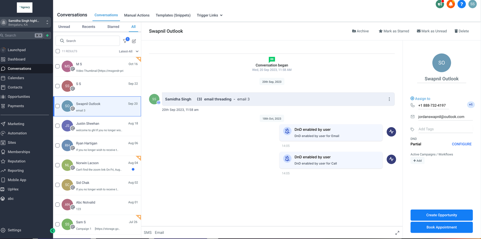 Activity cards notify you the moment a contact is marked as “Do Not Disturb” or is removed from the DnD list. These cards provide clarity and keep you informed about the current contact preference.