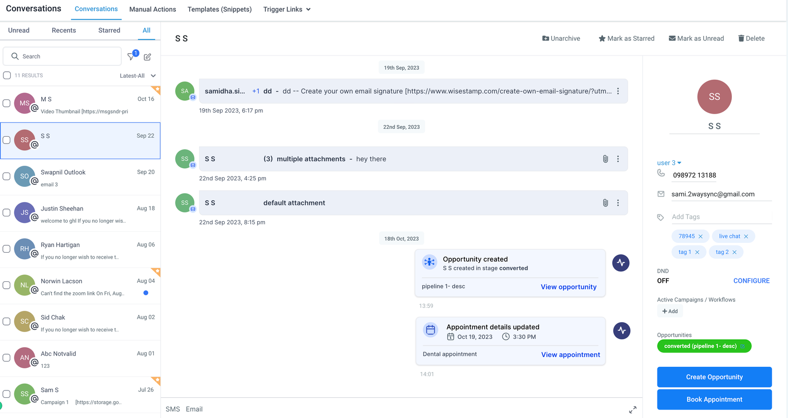 Anytime an appointment is created, rescheduled, or even canceled, you’ll find an activity card in the conversation panel. This feature is designed to keep you perpetually updated without the need to juggle multiple screens. By clicking ‘View Appointment’ within the card, you can seamlessly edit the appointment details, all while staying rooted in the conversation panel.