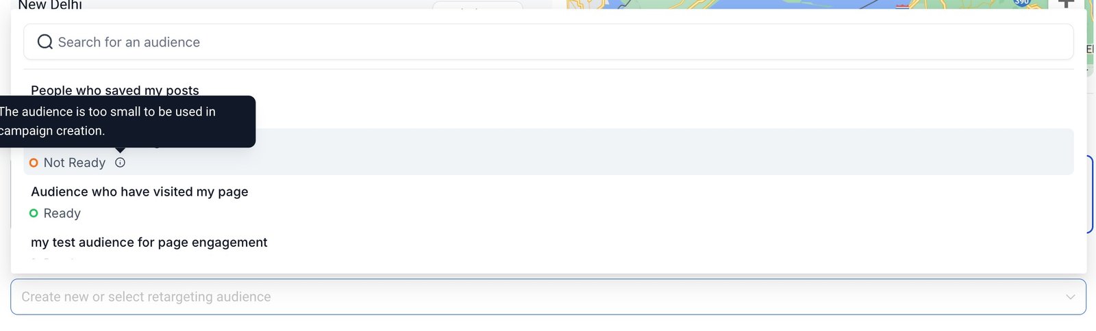 2. The ready and not ready state of the audience in the dropdown refers to their eligibility