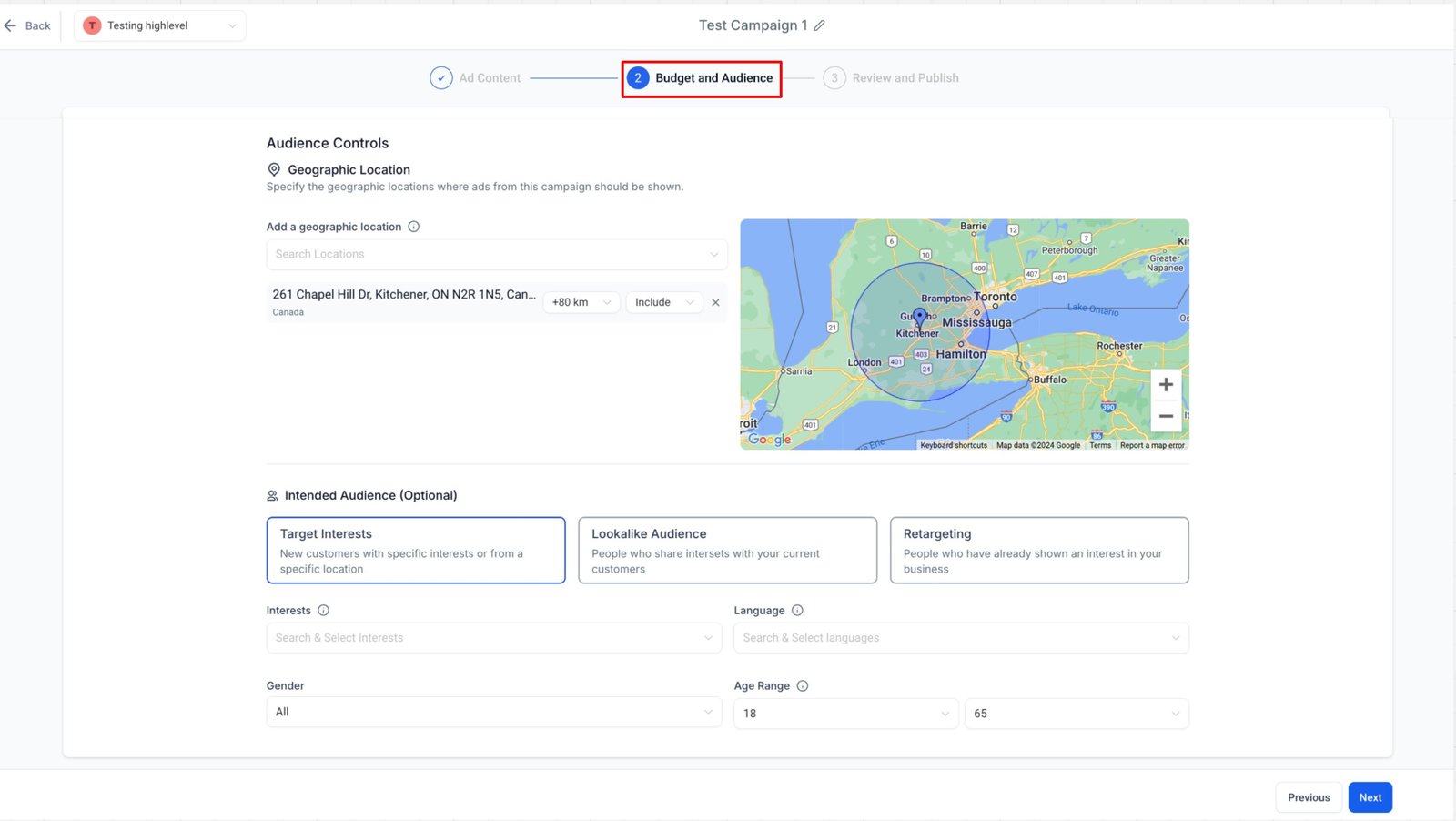 2. Audience Controls– This will be the second section of the ‘Budget and Audience’ step comprising of: