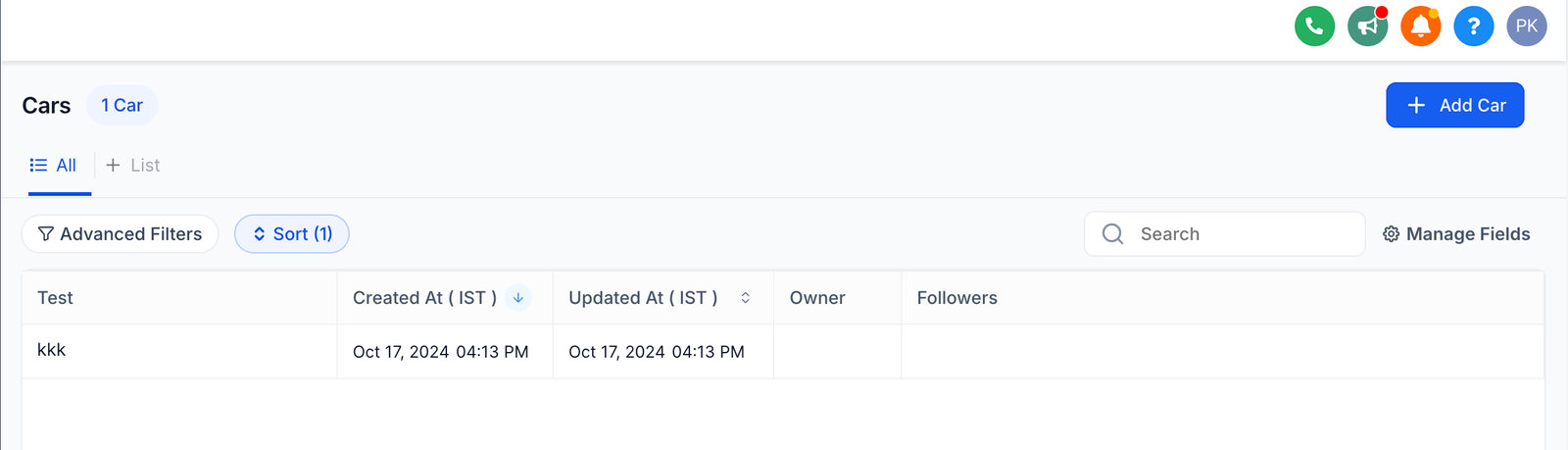 Find the option to apply “Advanced Filters” on the top right of the Custom Objects page